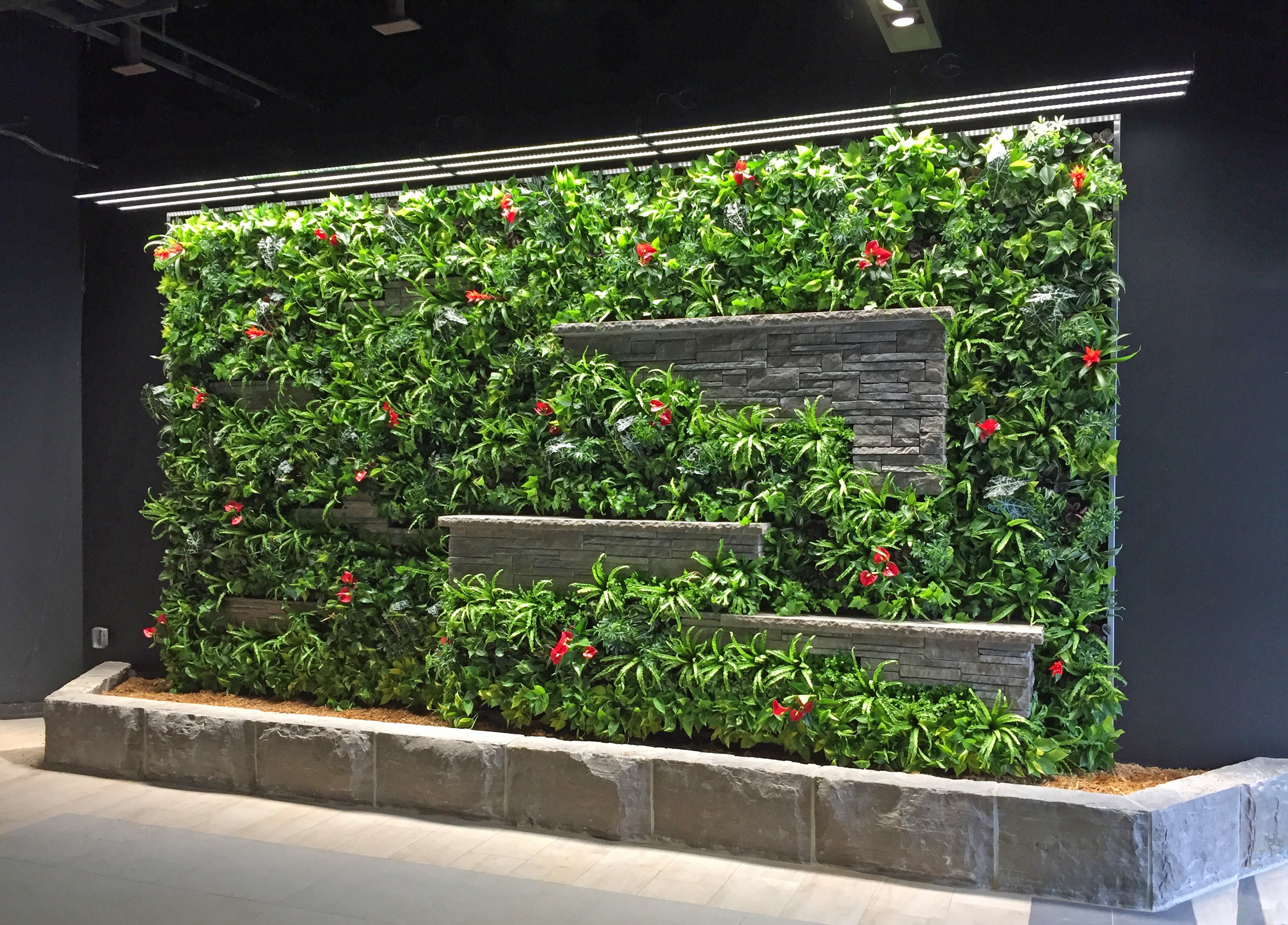 The plant palette was thoughtfully selected to include low-light species with similar maintenance requirements. This consistency is crucial in preventing plant loss due to varying light exposure or differing irrigation needs.