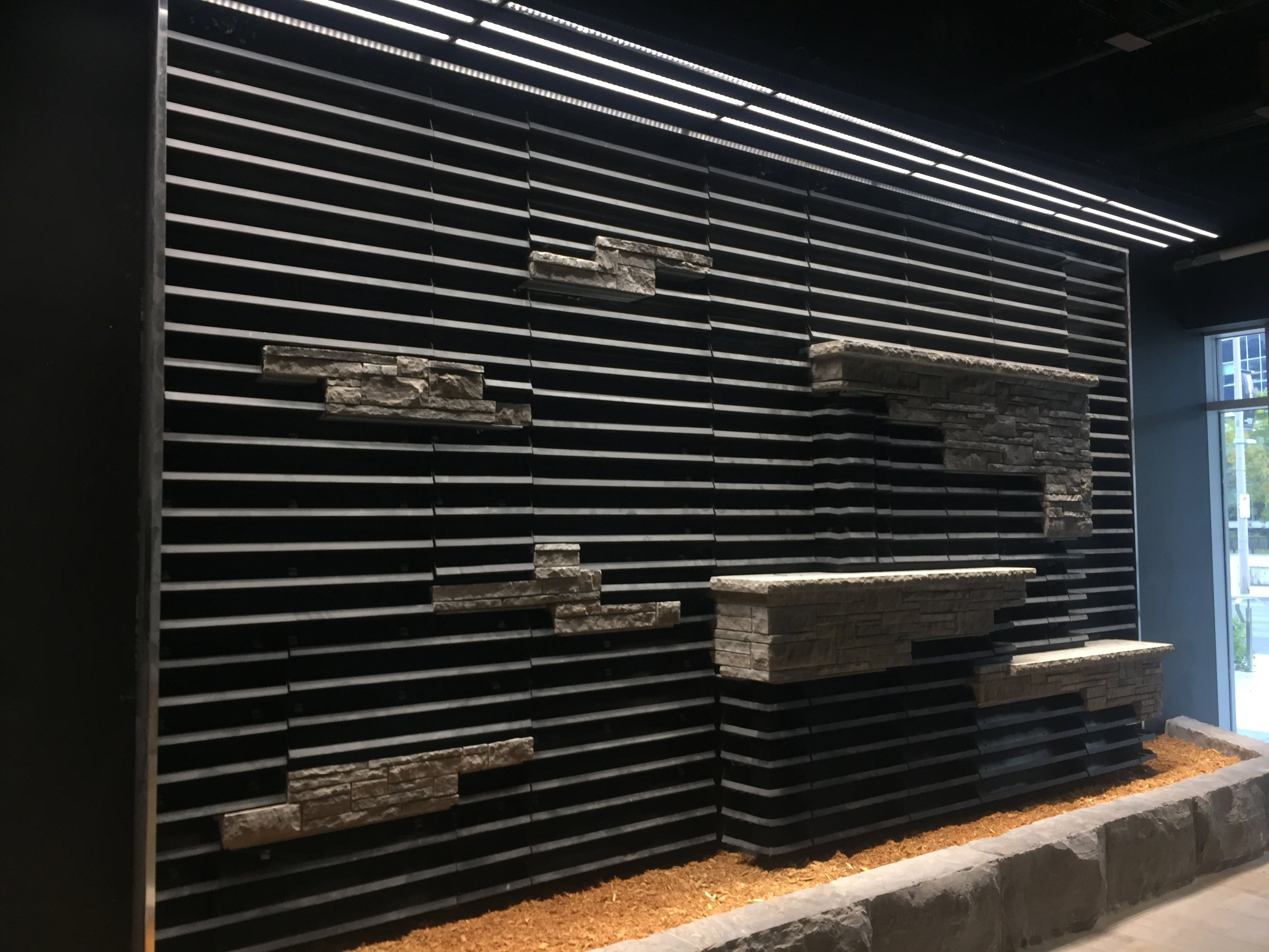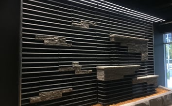 GLT is no stranger to working in three dimensions—providing innovative solutions for unique projects is a hallmark of our approach. Incorporating a protruding element of faux stone was simpler than the client initially anticipated. Through strategic surface preparation and careful planning, we were able to manufacture our plug-and-play panels using standard configurations, eliminating the need for costly custom fabrication. The panels fit seamlessly, and the final result was nothing short of dramatic.
