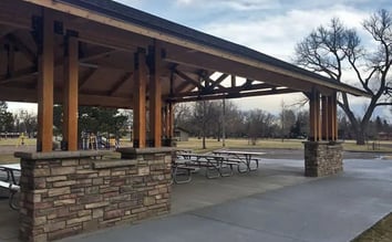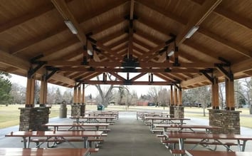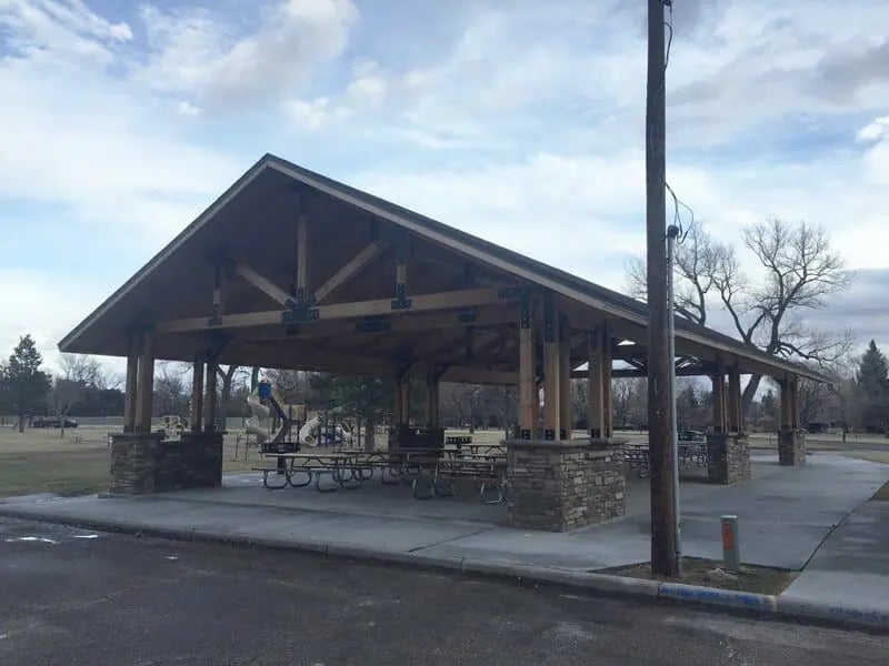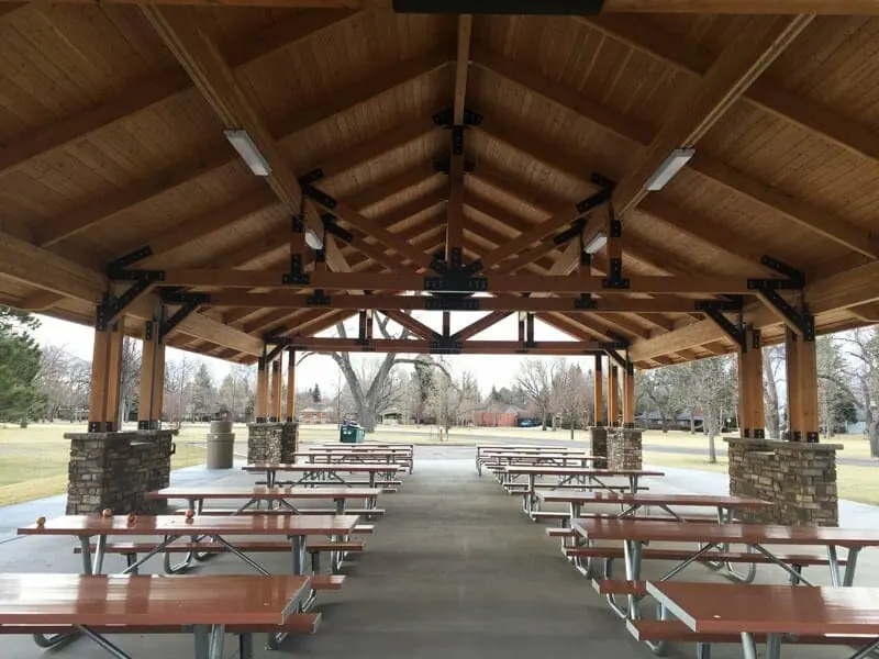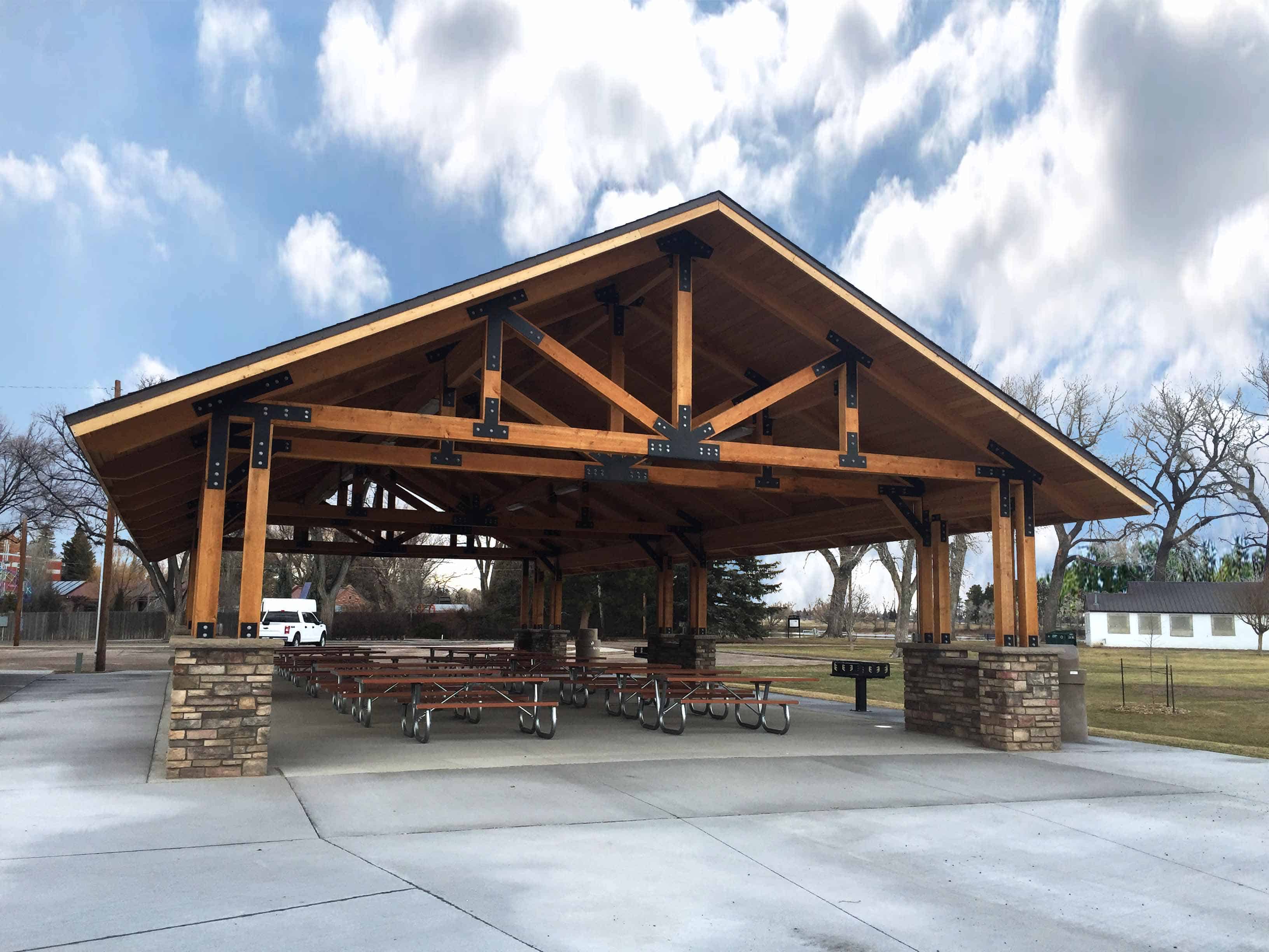 Romtec designed and supplied a large pavilion at Lions Park for the City of Cheyenne in Wyoming. The design of the new pavilion was inspired from a previous project found on the Romtec website. This one was customized with a new color scheme to better fit the look in the area. Lions Park is a massive recreational area that surrounds Sloans Lake. The perimeter of the lake features a scenic walking trail and is a favorite exercise route for regulars. Visitors are allowed to fish in the lake and can even rent boats and canoes. Several shelters are also available for rental throughout the park for birthday parties, barbeques, and other community events. The new Romtec pavilion is one of the rental shelters and includes a 35’ x 75’ sheltered area with tables and grills for parkgoers to use.
