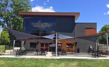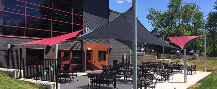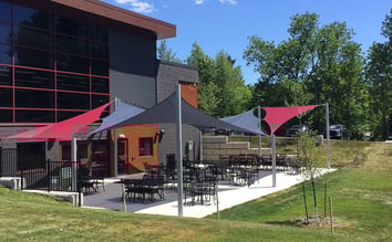 The County of Wellington approached Shade Sails Canada to provide shade for the entire 2,400 square foot outdoor patio area. The design parameters of the space required posts only on the perimeter of the space which meant that specific Shade Sail shapes and tensioning techniques had to be applied to successfully span the large distances between anchors. The design of the Shade Sail array creates significant shared strength between the four Sails and is rated to withstand enormous wind events.